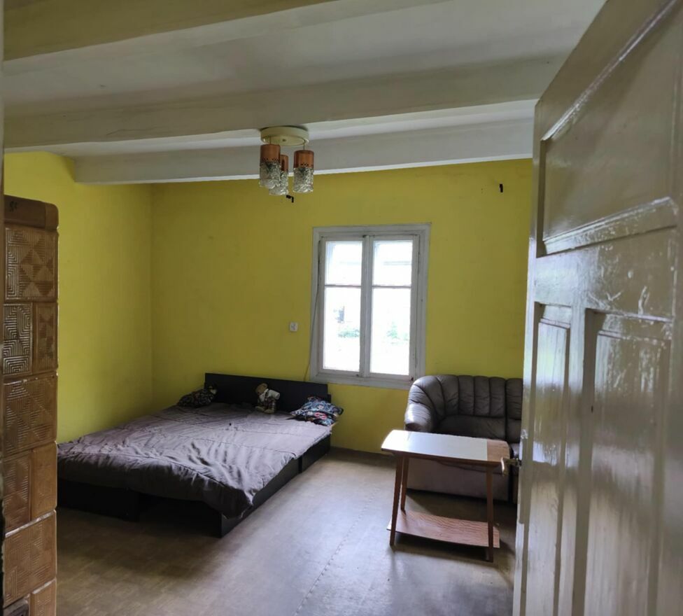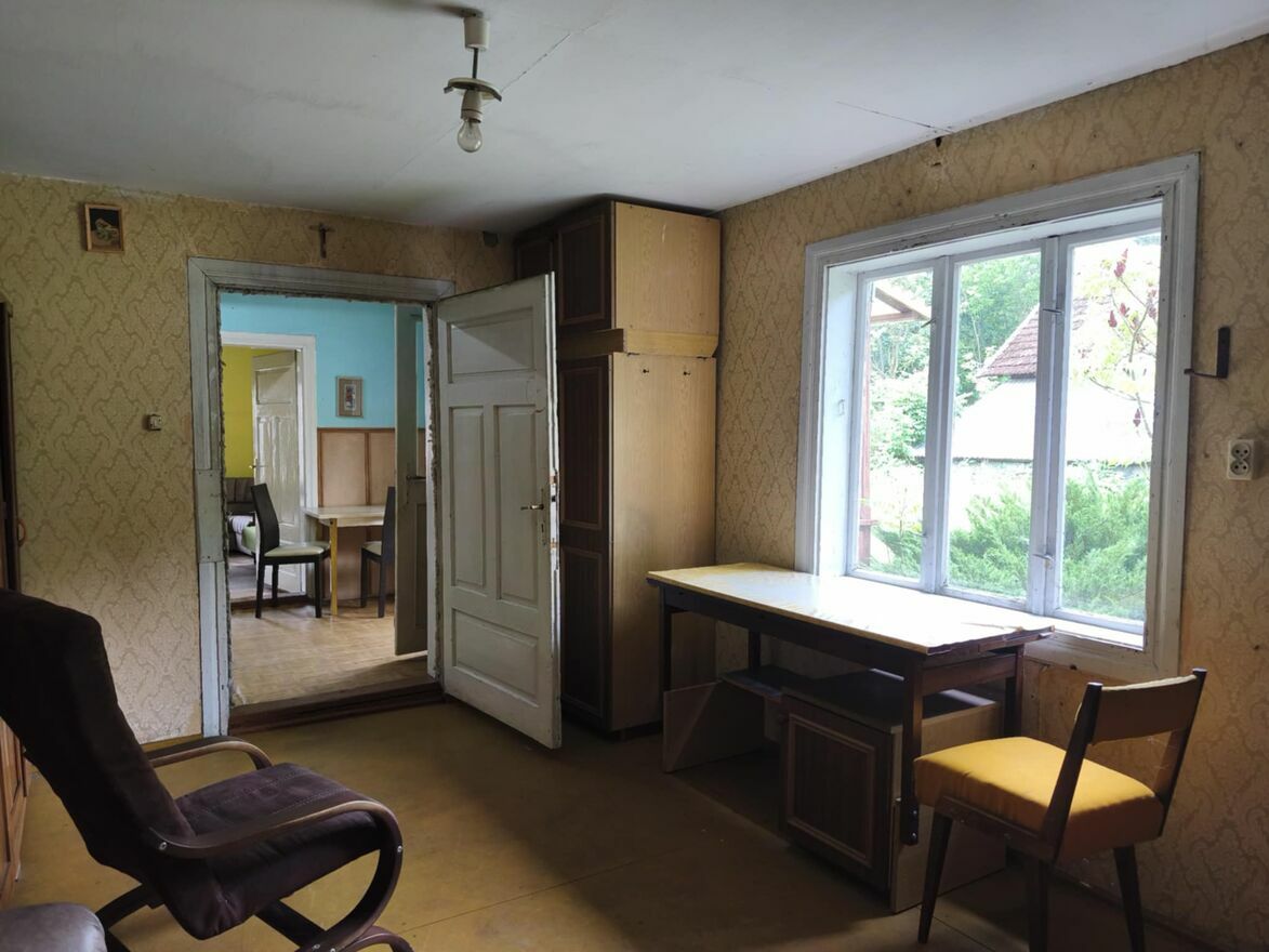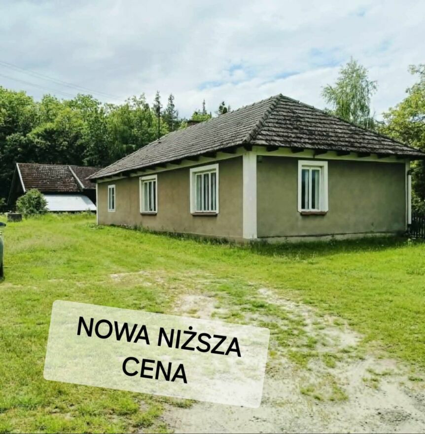 Opis nieruchomości: Dom parterowy, wybudowany w latach 60-tych, częsciowo murowany (od strony drogi), częściowo drewniany, pokryty dachówką cementową, oraz wyposażony w drewniane okna. W środku znajduję się: